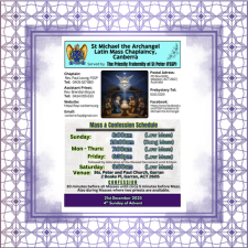 **Rosary is offered before Mass on Saturday, in reparation of the insults against the Immaculate Heart of Mary and also in reparation for the abortions carried out weekly in Canberra and Australia.
